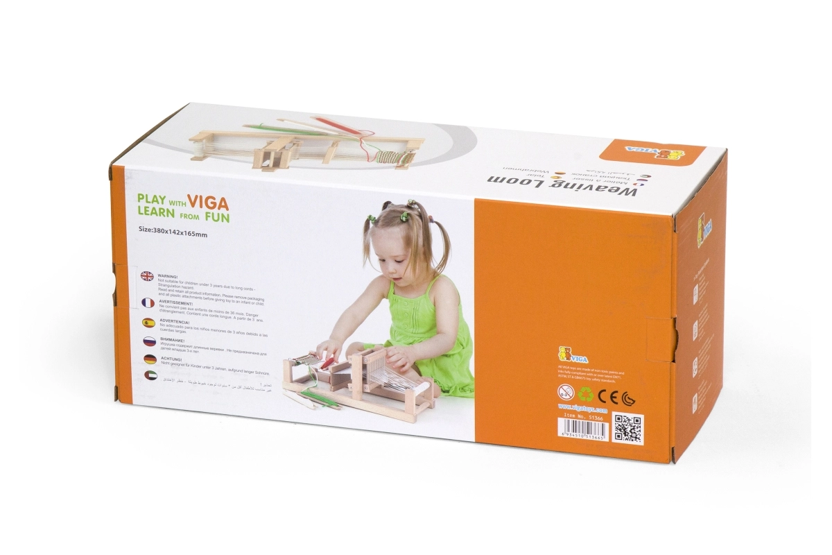 El telar de madera de VIGA es un juguete creativo atemporal que introduce a los niños, de forma divertida, en los fundamentos del tejido. Gracias a su diseño robusto en madera de alta calidad con certificado FSC, el telar es estable, duradero y agradable al tacto. Los niños pueden crear pequeños tapetes, posavasos o decoraciones mientras desarrollan su destreza de manera lúdica.