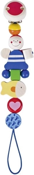 Los alegres motivos de piratas y peces atraen la atención infantil y estimulan el desarrollo sensorial. El práctico clip permite fijarlo fácilmente a la ropa, lo que minimiza su pérdida o caída, y el mecanismo de ajuste de longitud aumenta la comodidad.