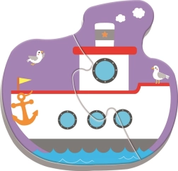 Cada rompecabezas representa un medio de transporte diferente —coche, tren, avión y barco— y fomenta el juego creativo.