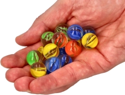 Cada canica tiene un patrón y color únicos, por lo que se convierte no solo en una pieza de juego, sino también de colección.