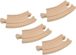 Este set de 4 vías curvas cortas es un gran complemento para cualquier circuito de trenes de madera. Gracias a su longitud de 10 cm por pieza, crearás fácilmente arcos compactos, enlaces y nuevos diseños de pista. Las vías se conectan de forma intuitiva y son adecuadas para pequeños constructores a partir de 3 años.