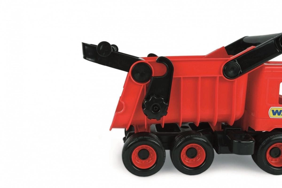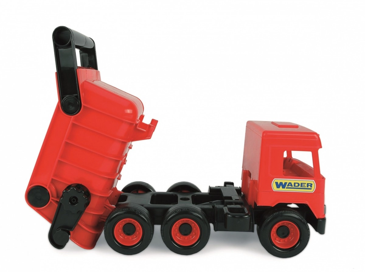 El volquete rojo Wader Middle Truck hará las delicias de cualquier niño que ame la aventura. Este camión de plástico de alta calidad tiene seis ruedas, lo que le proporciona estabilidad y resistencia incluso en juegos exigentes.