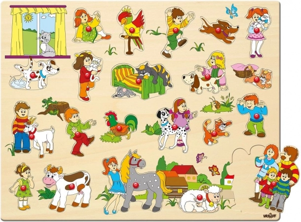 Gran rompecabezas niños y sus mascotas es el juguete ideal para desarrollar la motricidad fina y el pensamiento lógico. Fabricado en madera resistente, promete una larga vida útil y un uso sin complicaciones.
