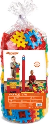 El juego de construcción Waffle de 170 piezas ofrece una variada paleta de colores y formas que se conectan fácilmente para crear construcciones en 2D y 3D. El material blando y flexible es agradable al tacto para las manos de los niños y favorece un juego seguro sin bordes afilados. La bolsa práctica facilita el almacenamiento y el transporte, para que los niños lleven su juguete favorito a donde quieran.