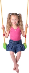 Disfruta de un juego al aire libre sin preocupaciones con este resistente asiento de columpio WOODY en color verde. Ofrece un asiento cómodo, cuerdas ajustables y una capacidad de hasta 80 kg. Gracias a los anillos metálicos para colgar, la instalación es rápida y sencilla, mientras que el robusto asiento de plástico garantiza un balanceo seguro para niños a partir de 6 años.
