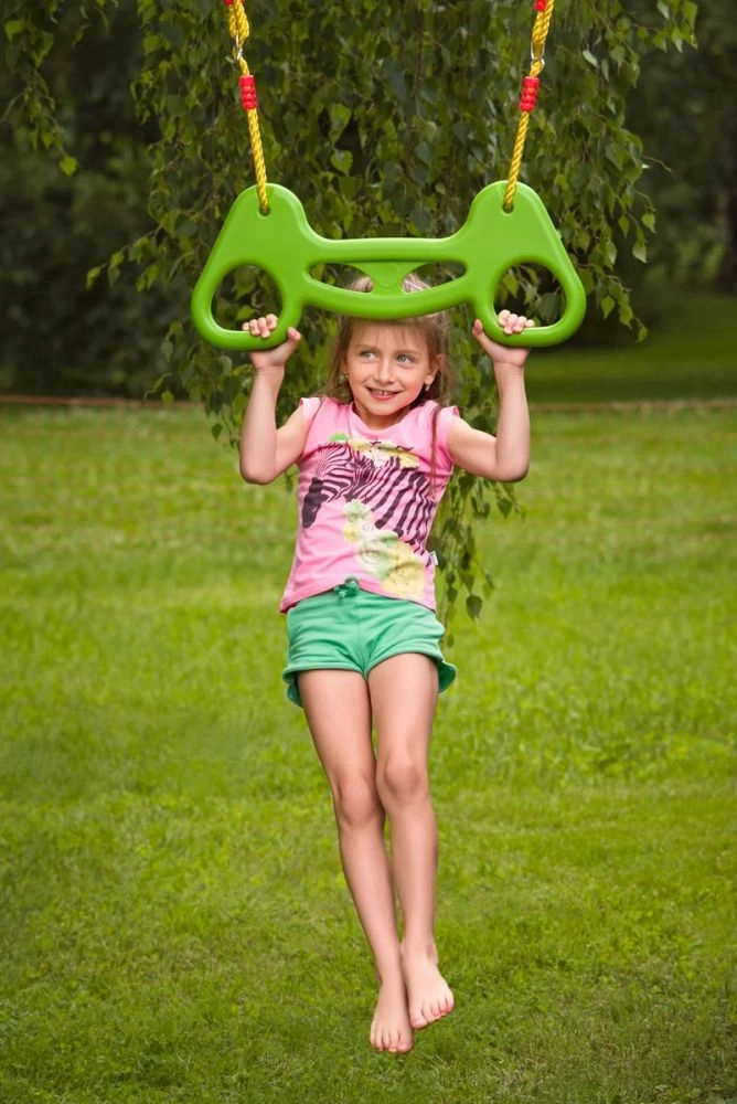 El asa y la barra con forma permiten a los niños un agarre seguro y estable al balancearse y ejercitarse, favoreciendo la técnica adecuada y la confianza en el movimiento.