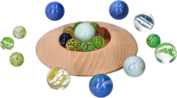 Este juguete es estupendo para todas las edades, especialmente recomendado para niños a partir de 3 años. Las canicas de vidrio aportan alegría al movimiento y ayudan a desarrollar la coordinación mano-ojo.