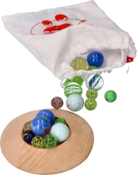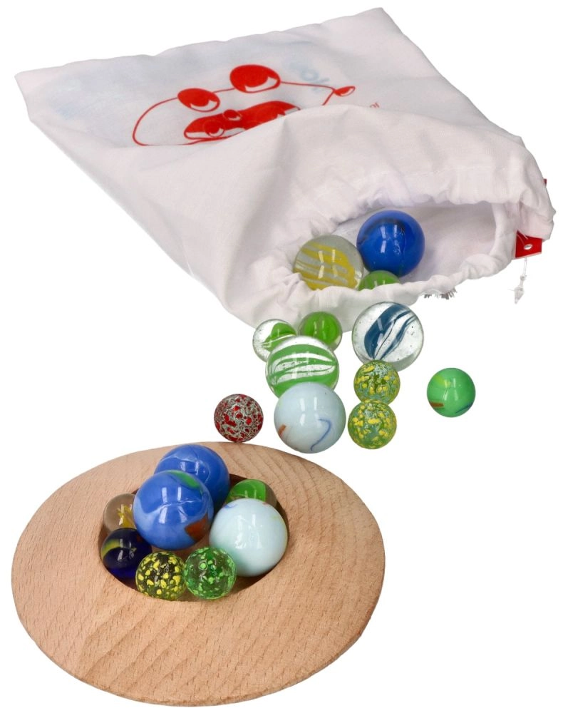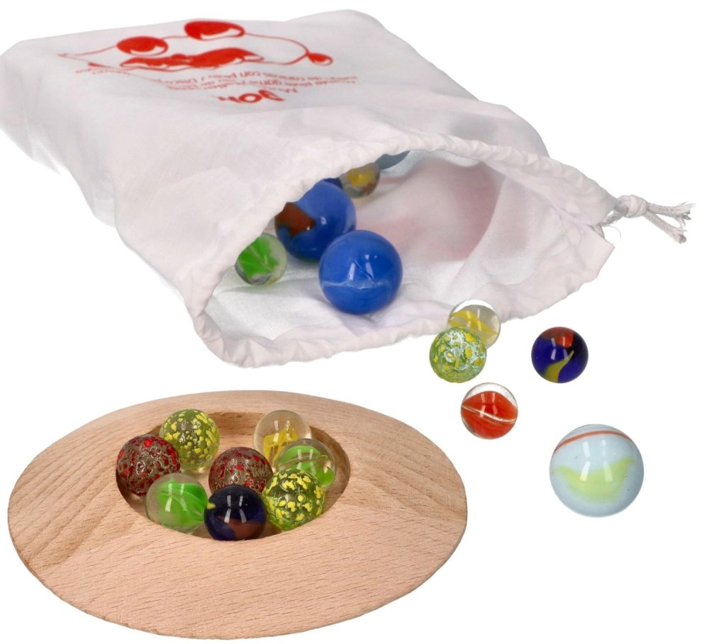 Lleva tus canicas favoritas a cualquier parte con la práctica bolsa de algodón. Este set contiene 31 canicas de vidrio de varios colores y un hoyo de madera, lo que lo convierte en una opción ideal para juegos en interiores. Fomenta la creatividad y desarrolla la motricidad fina de los niños. ¿Quién será el más hábil y meterá más canicas en el hoyo?