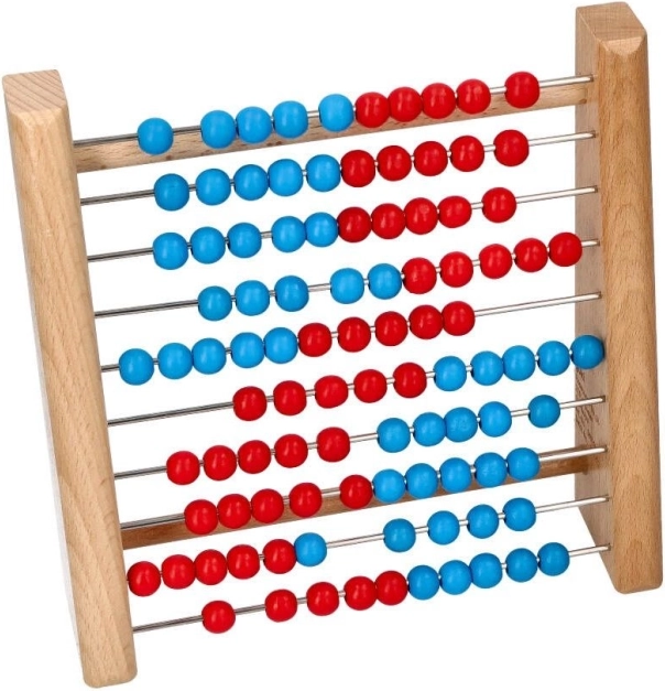 Este ábaco compacto en azul y rojo es un gran aliado para los primeros contactos con los números y la aritmética básica. Gracias a sus colores claramente contrastados, facilita a los niños la comprensión de las cantidades y las sencillas operaciones de suma y resta.