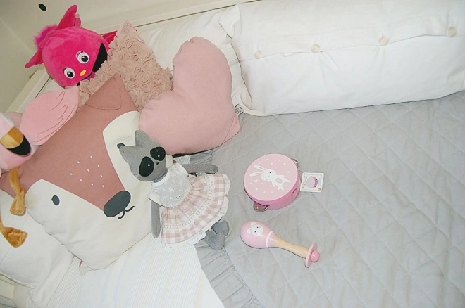 Esta maraca de madera ligera en un delicado color rosa encantará a cualquier bebé. Su sonido suave no molesta, sino que estimula de forma natural la vista, el oído y la coordinación ojo-mano. La forma ergonómica facilita el agarre y un movimiento seguro.