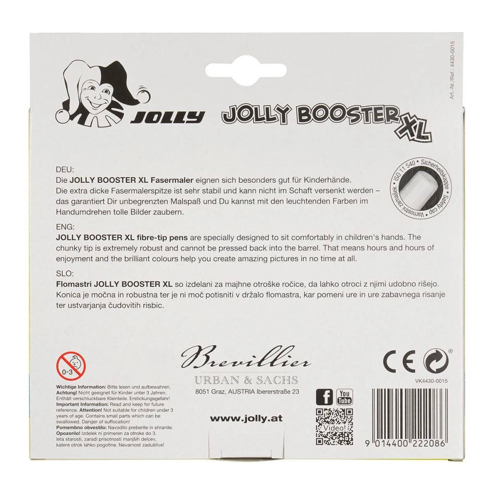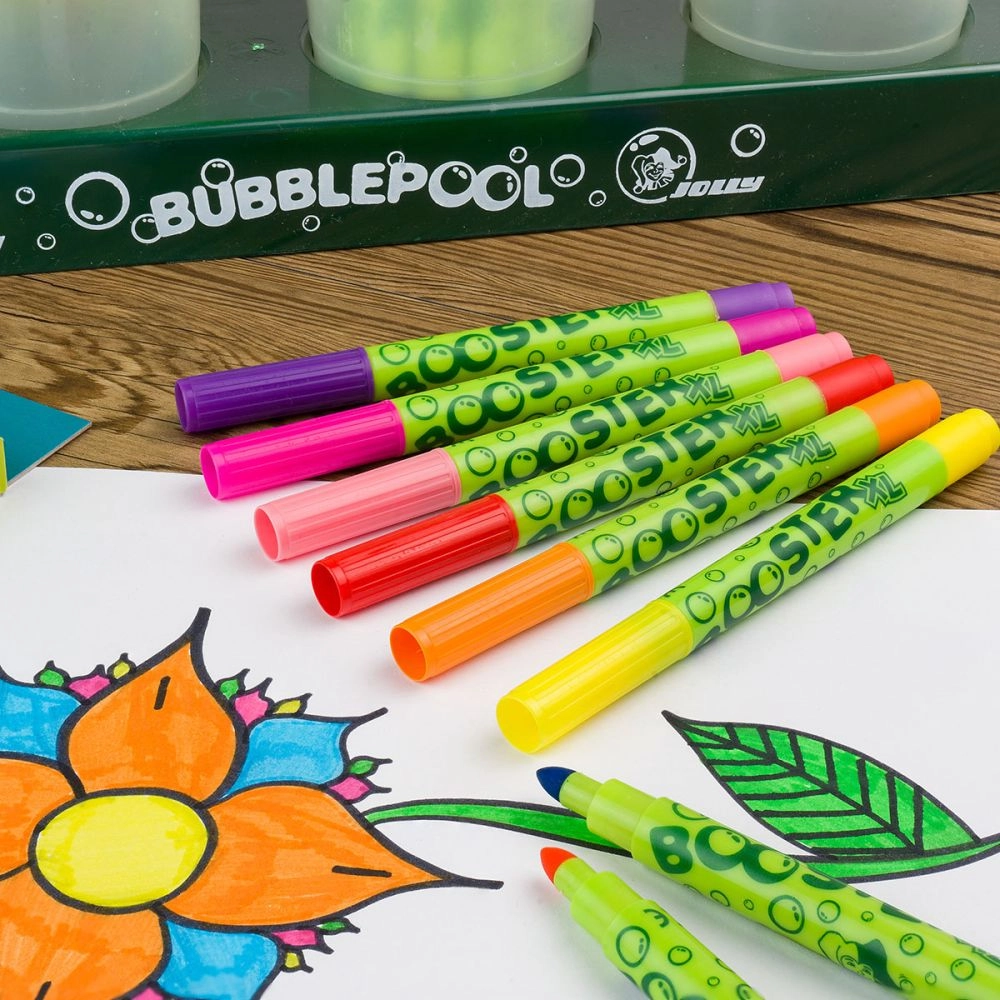 Los Booster XL están diseñados para estimular la creatividad de los niños. Gracias a sus puntas extra resistentes y a la forma ergonómica, se sujetan cómodamente incluso en manos pequeñas. Estos rotuladores ofrecen: