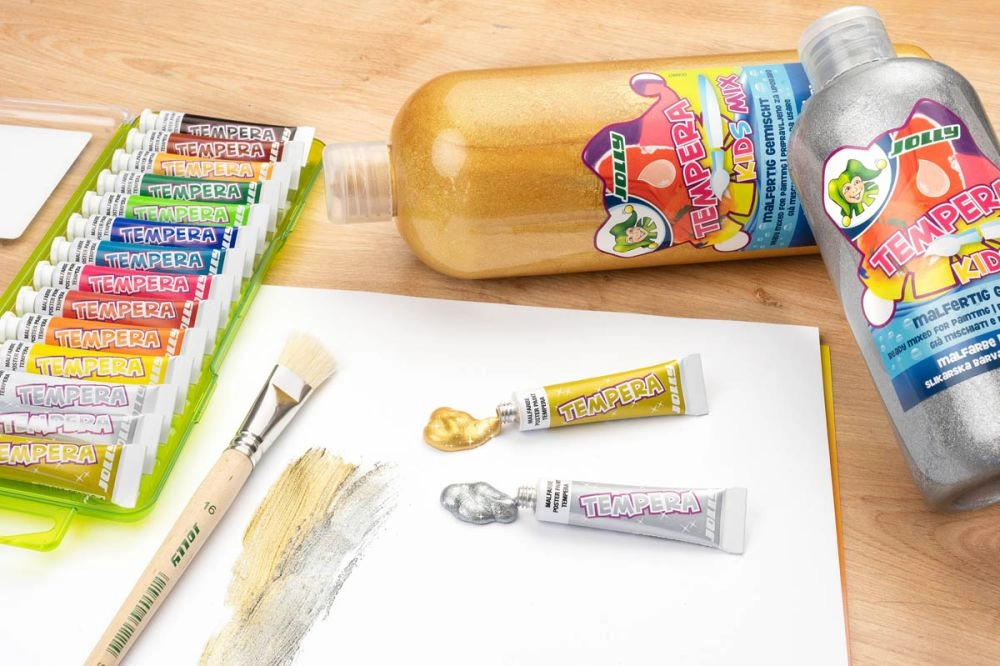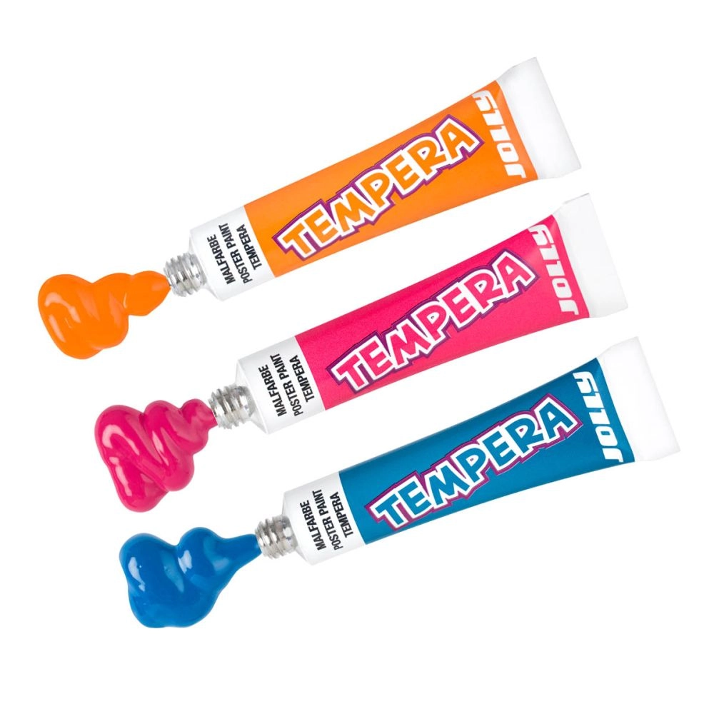 Las témperas Jolly son adecuadas para diversas actividades artísticas y manualidades, incluyendo la creación de carteles y decoraciones. Para proteger la ropa, recomendamos el uso de un delantal 3+.