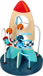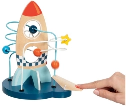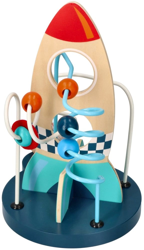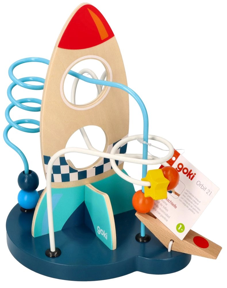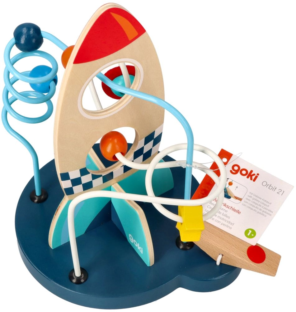 Desplazar las cuentas por los recorridos de alambre desarrolla el agarre, la coordinación ojo–mano y la paciencia de los niños a partir de 12 meses.
