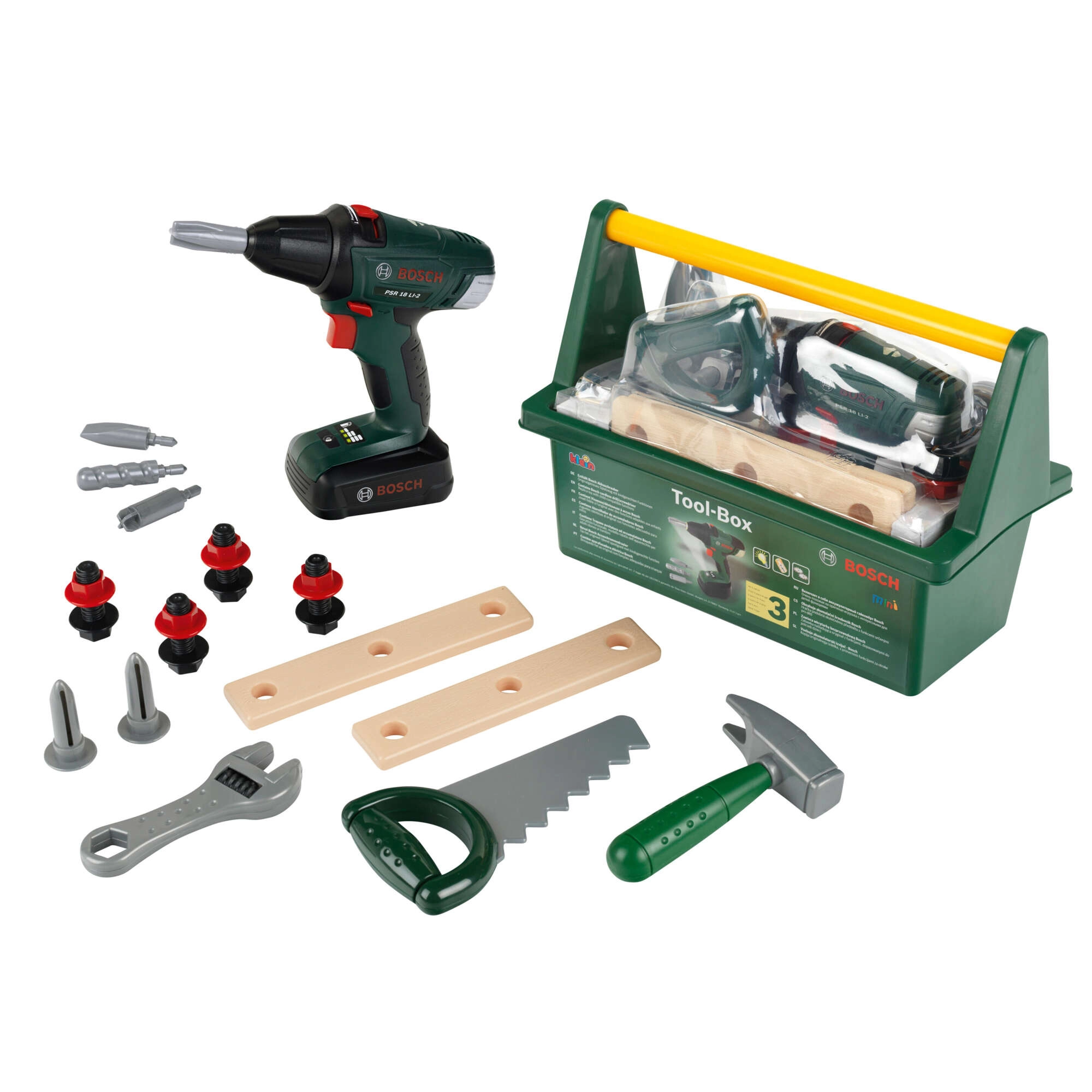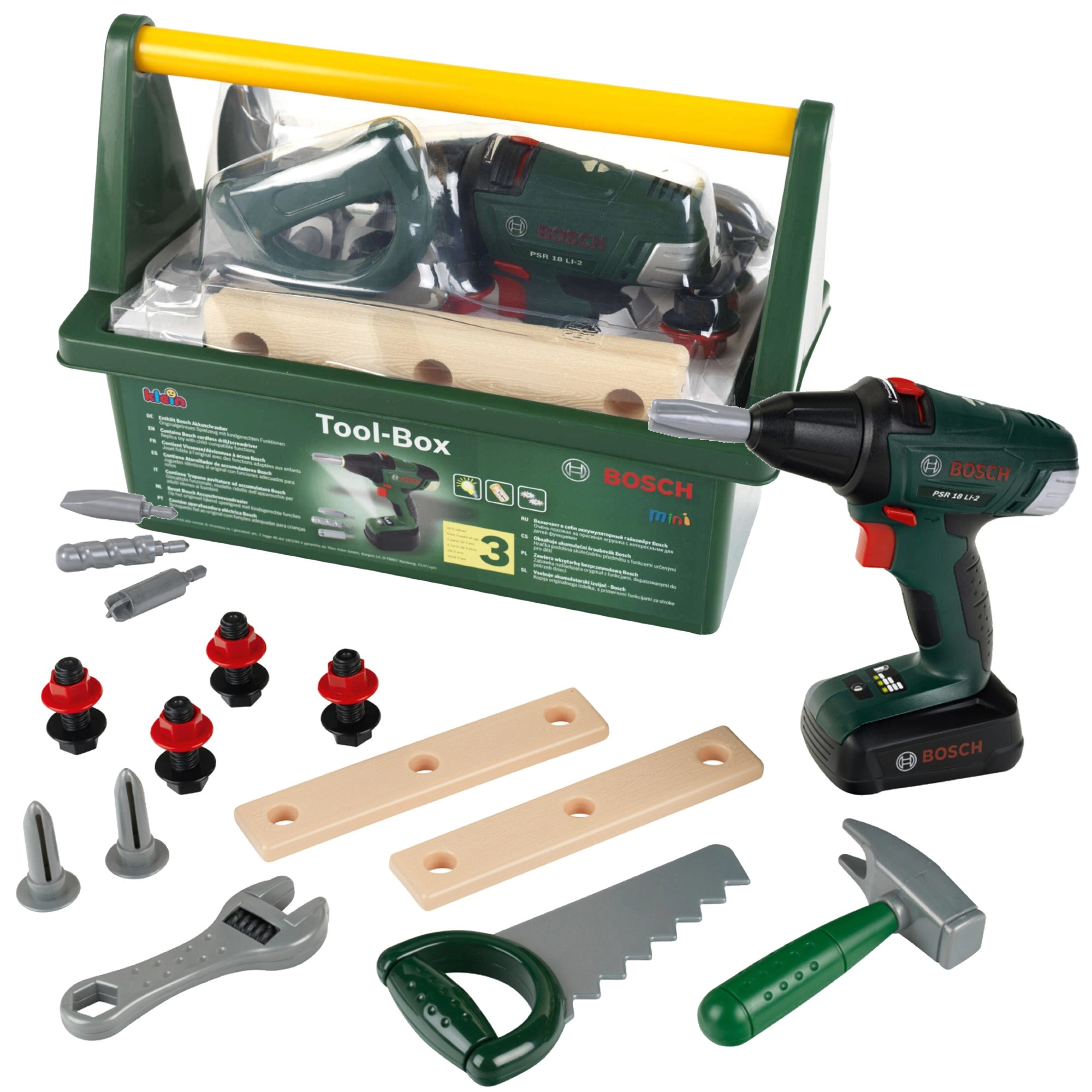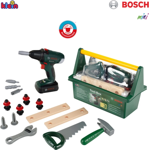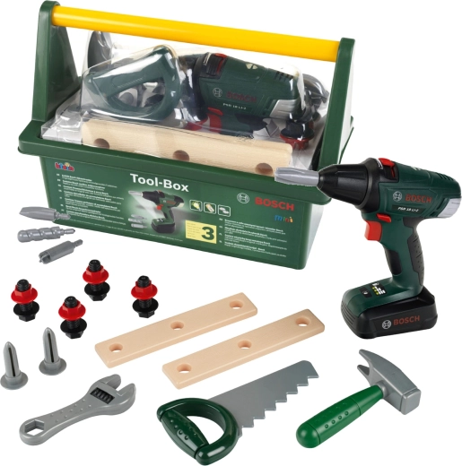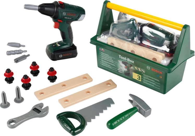 Este set infantil de alta calidad, con licencia BOSCH, está diseñado para imitar fielmente las herramientas reales y ser a la vez totalmente seguro para los niños. La caja de herramientas robusta, de color verde oscuro y con un cómodo asa amarilla, mantiene todas las piezas ordenadas y facilita su transporte.