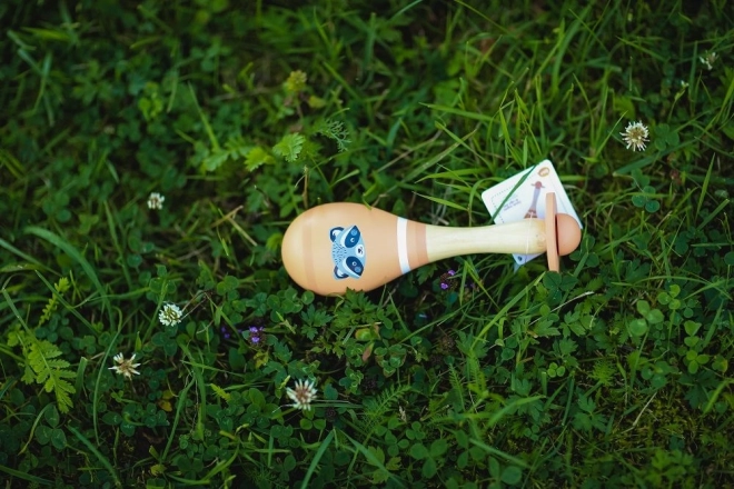 Esta maraca de madera es un excelente primer juguete musical para desarrollar el oído, la motricidad fina y el sentido del ritmo. Su superficie cuidadosamente pulida y su forma agradable facilitan el agarre por manos pequeñas, mientras que el alegre motivo de animal estimula la imaginación y el juego.