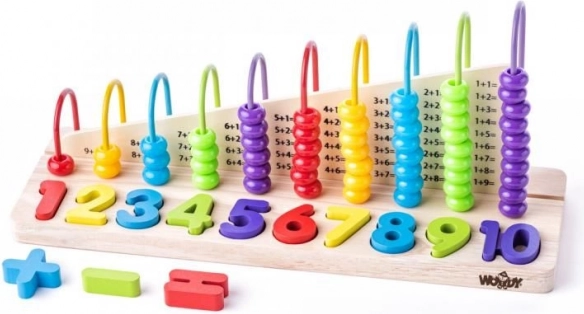 Este ábaco ayuda a los niños a practicar sumas y restas y, al mismo tiempo, sirve como rompecabezas educativo para los más pequeños que están aprendiendo los números del 1 al 10.