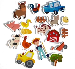 - 18 pegatinas de espuma (granja: animales, vehículos, edificios y accesorios)