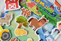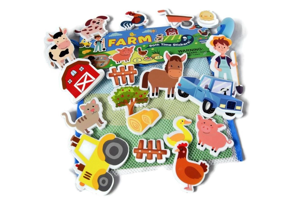 Regala a los niños un baño lleno de fantasía. El set de pegatinas de espuma con temática de granja incluye 18 piezas: tiernos animales, un tractor, un granero y otros elementos que los niños combinan libremente para crear sus propias historias. Basta una gota de agua para que las pegatinas se adhieran firmemente a superficies lisas, y aun así se puedan retirar y reutilizar con facilidad.