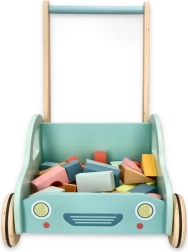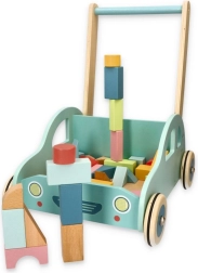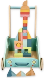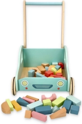 Los bloques de madera de colores desarrollan la motricidad fina, la imaginación y el pensamiento lógico. El carrito sirve como práctico espacio de almacenamiento para los bloques y las construcciones terminadas.