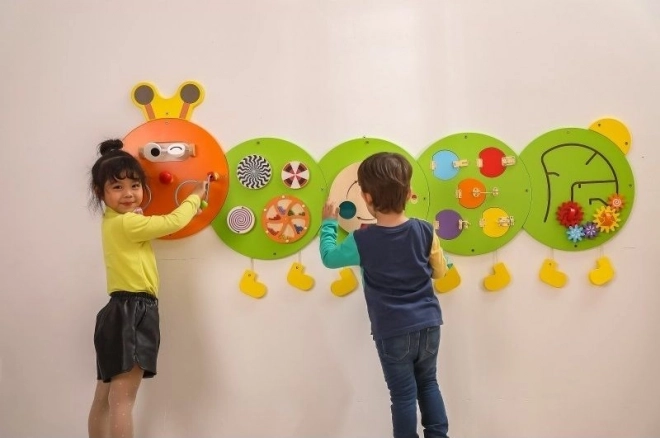 Explora un mundo lleno de colores con este conjunto mural con forma de oruga. Contiene cinco partes interactivas que permiten a los niños aprender jugando y desarrollar diversas habilidades: