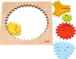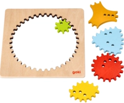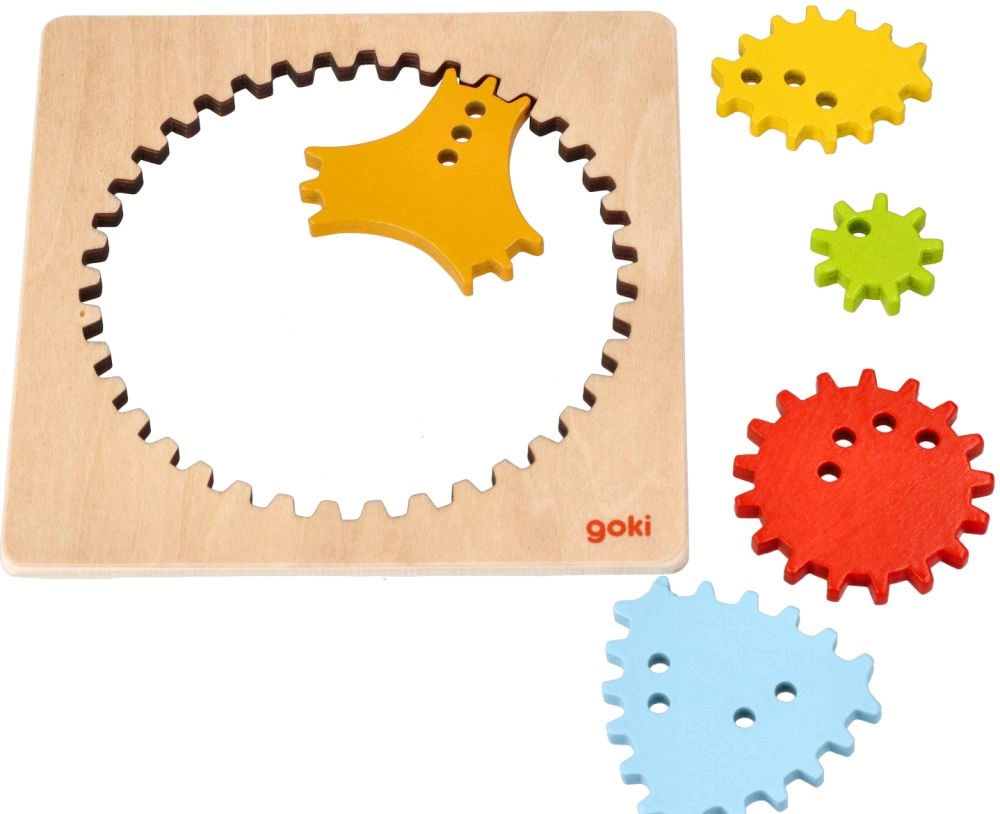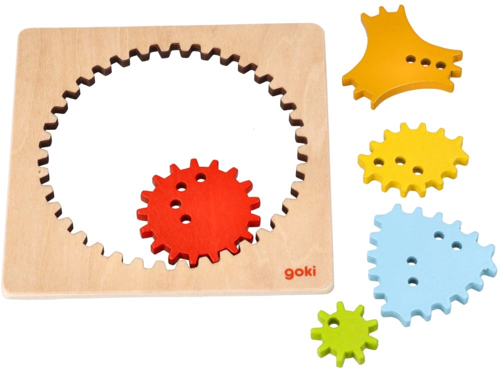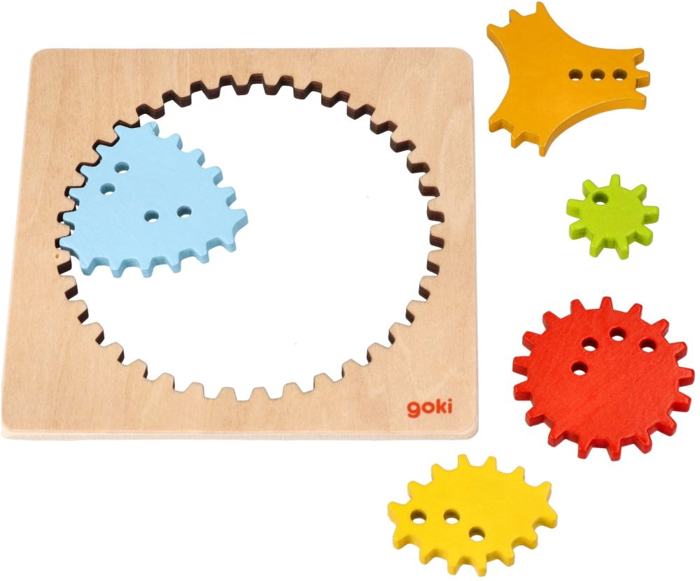 El marco con un set de 5 engranajes de distintas formas favorece la motricidad fina, la concentración y el desarrollo de la grafomotricidad. El acabado en madera de calidad y las piezas cuidadosamente elaboradas son seguras y agradables al tacto.