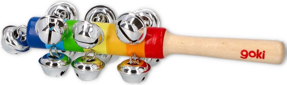 Los cascabeles arcoíris de Goki son una elección estupenda para niños que aman la música y el ritmo. Gracias a sus 13 cascabeles de sonido claro, pueden probar ejercicios rítmicos, acompañar canciones o crear sus propios patrones melódicos. El asa ergonómica se adapta perfectamente a la mano infantil y facilita el manejo.