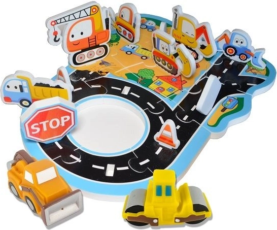 Las ligeras piezas de espuma flotan y, al humedecerlas, se adhieren a los azulejos. Los niños construirán carreteras, colocarán señales y darán vida al juego con vehículos de obra.