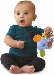 El asa de fácil agarre y los aros del sonajero ayudan a desarrollar la capacidad de agarre y el movimiento.