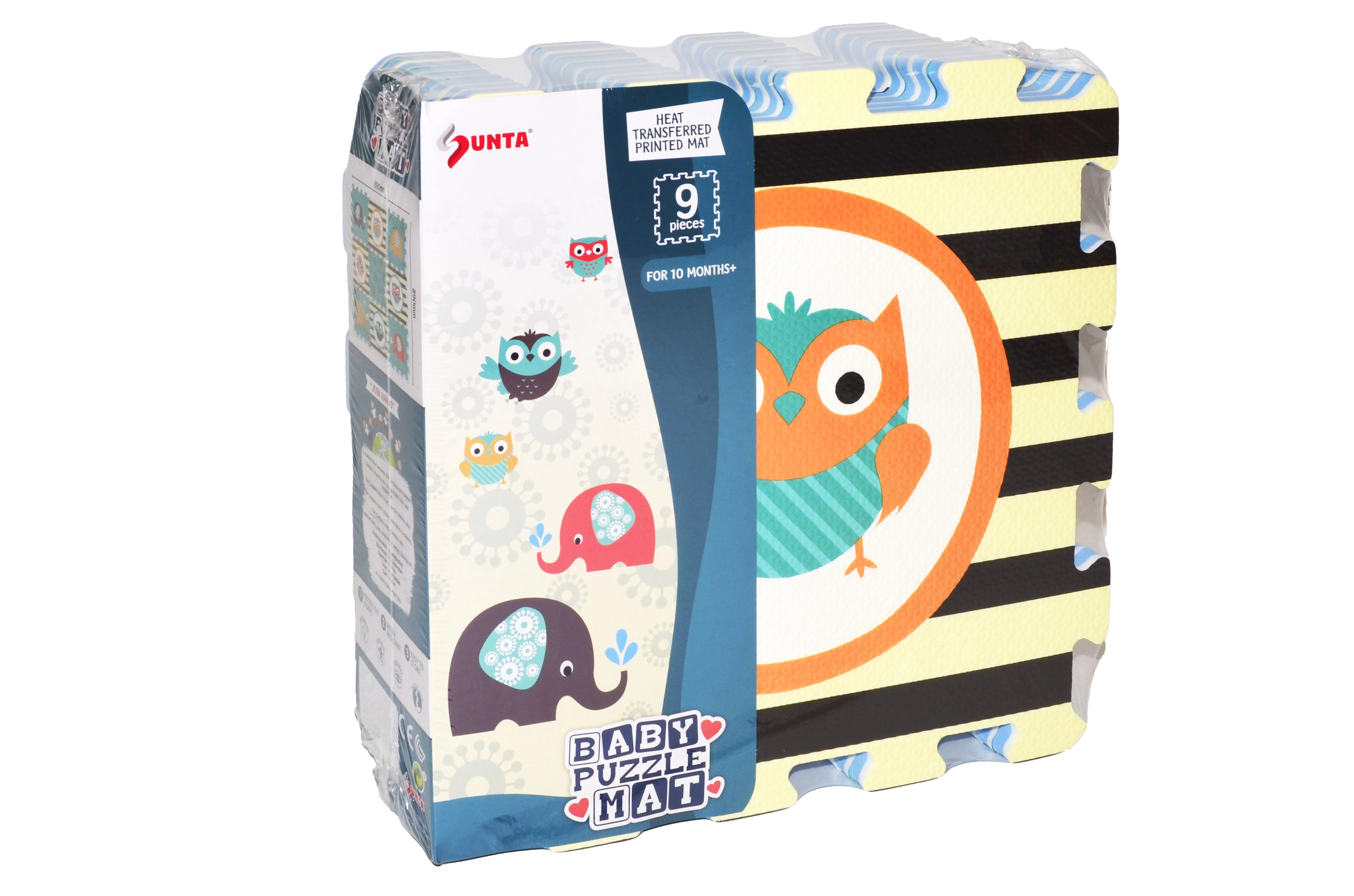 El rompecabezas de espuma con motivos de Búho y Elefante en colores vivos capta la atención de cualquier niño.