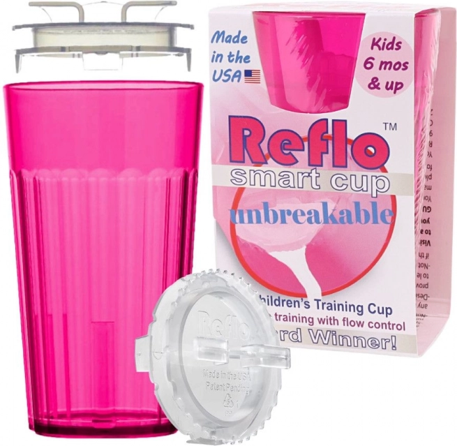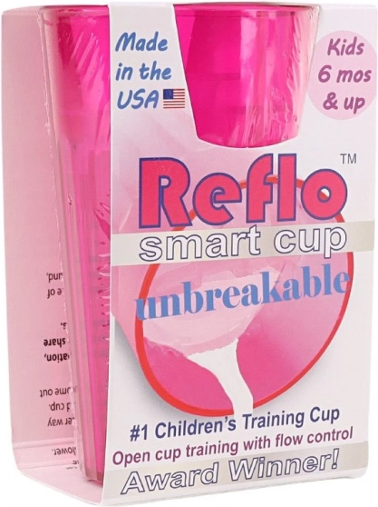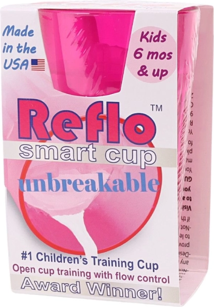 El vaso de entrenamiento Reflo rosa ayuda a los niños desde los 6 meses a aprender a beber con seguridad de un vaso abierto. Gracias a la regulación del flujo reduce los derrames, su diseño irrompible es ideal en casa y de viaje, y su capacidad compacta de 170 ml se adapta perfectamente a las manos pequeñas. Fabricado en EE. UU., cumple la EN 14350.