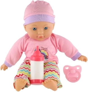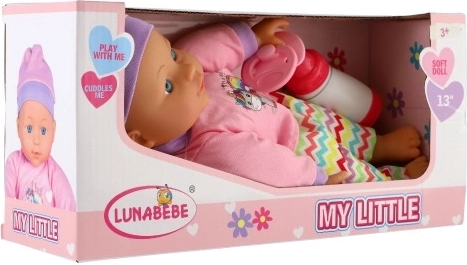 La muñeca se entrega con biberón y chupete, lo que ofrece a los niños una experiencia de juego realista. Gracias a su cuerpo suave, también es perfecta para acurrucarse y proporciona una sensación de seguridad.