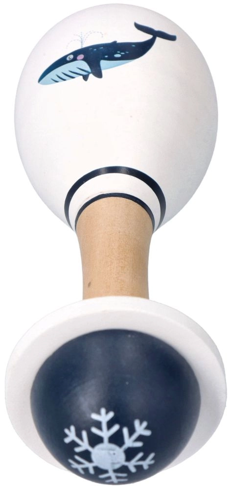 Esta elegante maraca infantil con motivo de ballena es ideal para los primeros descubrimientos musicales. Su diseño ligero se sujeta fácilmente incluso con manos pequeñas, y el suave traqueteo favorece el desarrollo auditivo y el sentido del ritmo.