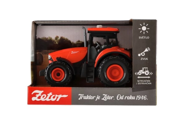 Realista tractor de plástico ZETOR para pequeños granjeros, con mecanismo de inercia para una marcha fluida, efectos de luz y sonidos de marcha atrás, claxon y arranque del motor. Su tamaño compacto de 14 cm encaja perfectamente en la mano de los niños y encantará a partir de los 3 años. Las pilas 3× AG13 están incluidas, así que la diversión puede empezar de inmediato.