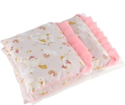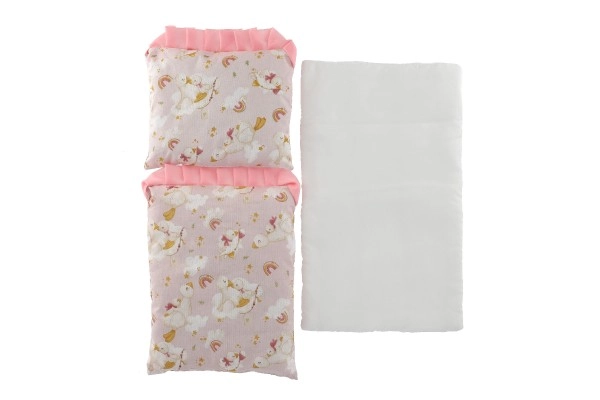 El acolchado suave del edredón y de la almohadita ofrece un entorno acogedor para las muñecas y un juego más agradable para los niños.