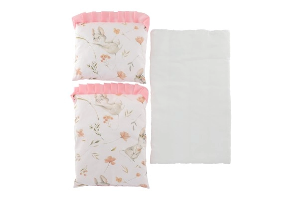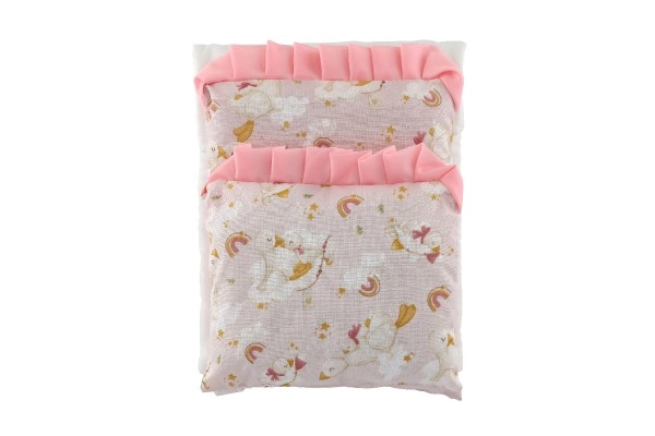 El práctico set para muñecas incluye todo lo necesario para un descanso cómodo: un edredón mullido, una almohadita esponjosa y una base. Gracias a los materiales suaves y a los motivos divertidos, queda perfecto en cualquier habitación infantil y favorece el desarrollo de la imaginación y el juego de roles.