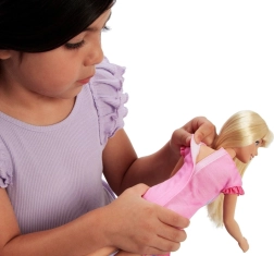 Los cierres prácticos y el mayor tamaño de 34 cm facilitan la manipulación. Los niños practican la autonomía y disfrutan del juego de moda sin frustraciones.