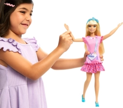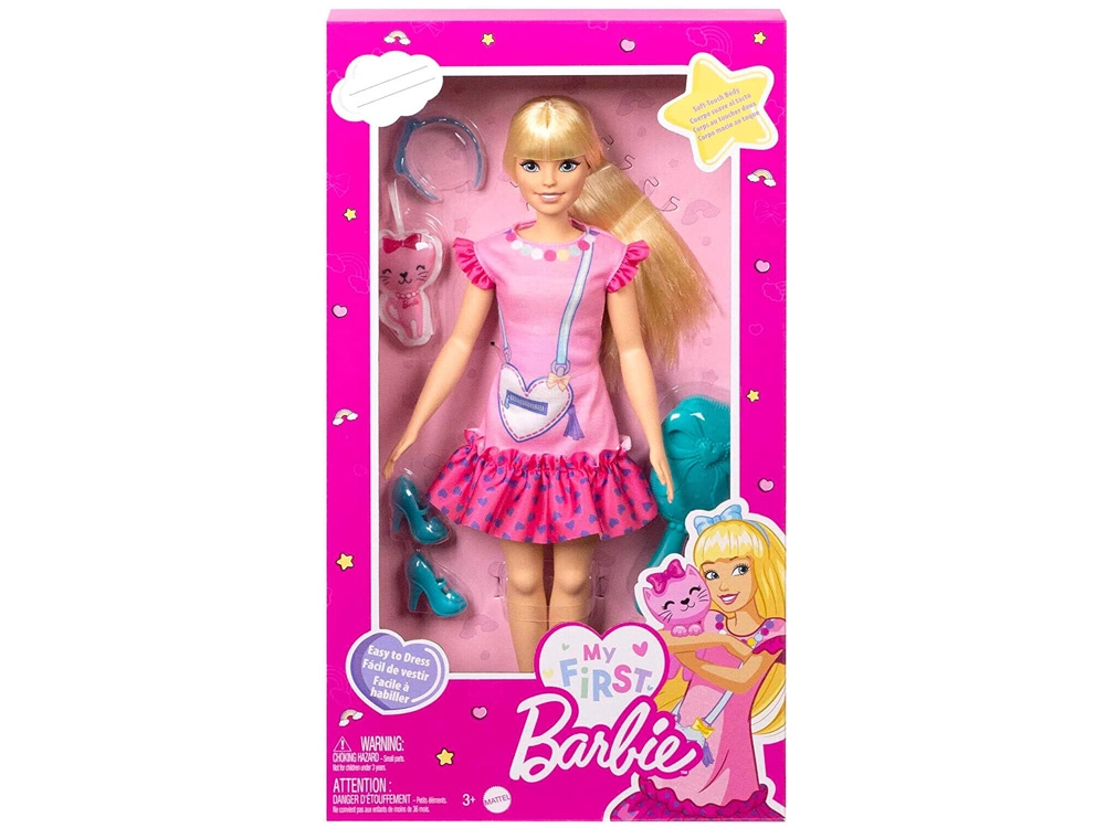 Entra en un mundo donde empieza la amistad y la imaginación no tiene límites. La muñeca de la línea Mi primera BARBIE es más grande, ligera y agradablemente flexible, para que las manitas la sostengan, vistan y posen con facilidad. El vestido rosa está decorado con detalles juguetones como volantes y un gráfico de bolso con forma de corazón; no faltan la diadema y los zapatitos a juego. El largo cabello rubio invita a peinar y crear peinados, lo que desarrolla de forma natural la motricidad fina.