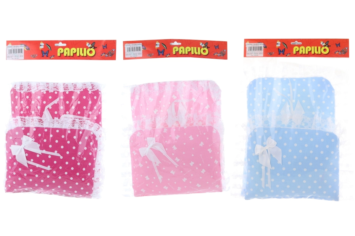 Este elegante conjunto de edredón y almohadita para muñecas está diseñado para acostar con comodidad y estilo a los juguetes favoritos. El delicado encaje y el lazo aportan un aspecto encantador que combina a la perfección con cochecitos o cunas para muñecas.