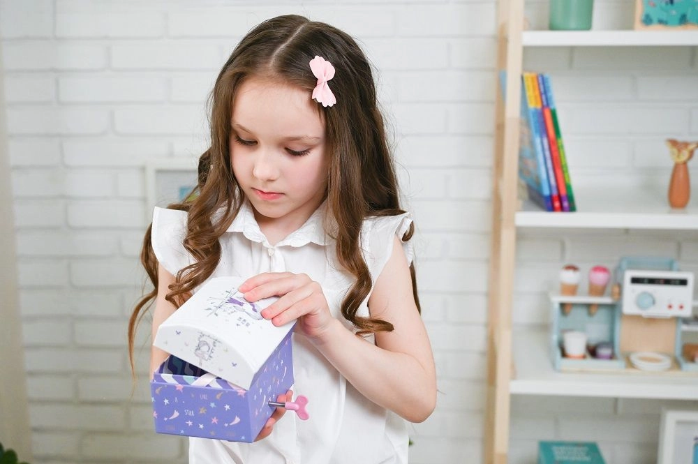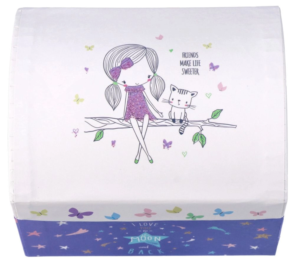 Esta hermosa caja de música con el motivo "Amigos" es un regalo ideal para niños a partir de 6 años. Adornada con patrones coloridos e imágenes mágicas, ofrece no solo espacio de almacenamiento, sino también una melodía que deleita la vista y el oído.