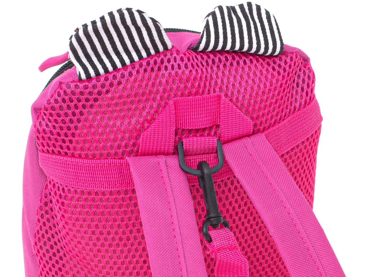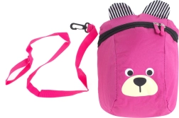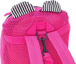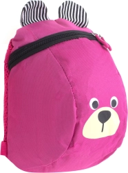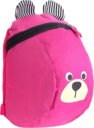 La carita amable del osito y sus orejitas a rayas motivan a los niños a llevar la mochila y cuidar de sus cosas.