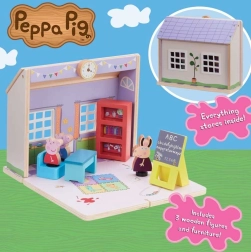 Abre la escuela de madera y comprueba que en la escuela también puede haber mucha diversión. Con este set de juego, que incluye a Peppa Pig, George y la señora Gacela, los sueños de los niños cobran vida. La construcción de madera no solo es estéticamente agradable, sino también ecológica gracias al uso de madera certificada FSC, que es resistente y sostenible.