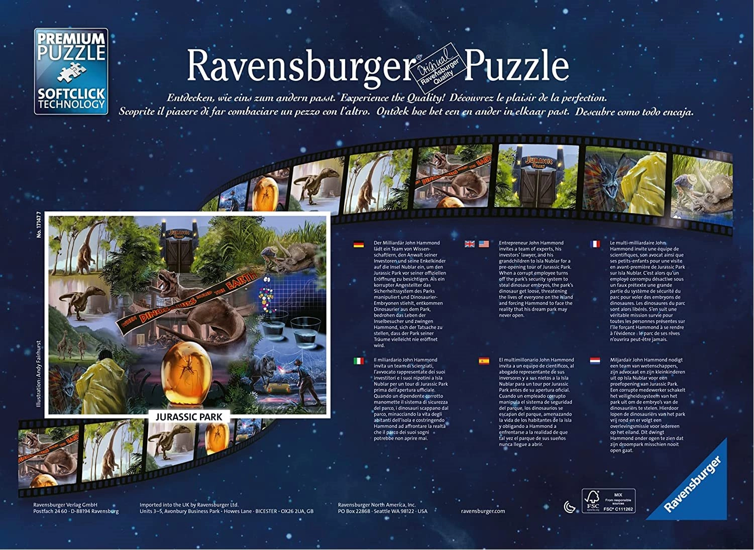 Sumérgete en el mundo de los dinosaurios con el motivo icónico de la película Jurassic Park. El set de 1000 piezas de la marca Ravensburger es conocido por su elaboración de primera, cortes precisos y una sensación agradable al montar. La tecnología SoftClick asegura que cada pieza encaje sin esfuerzo y correctamente, mientras que la superficie con textura de lino natural minimiza los reflejos y resalta los detalles.