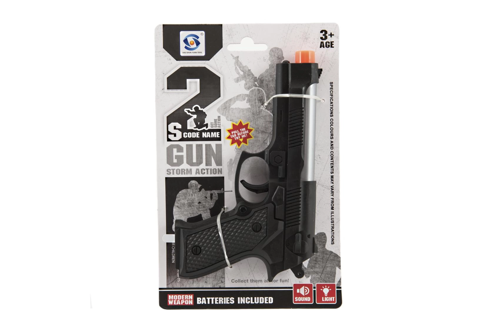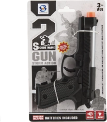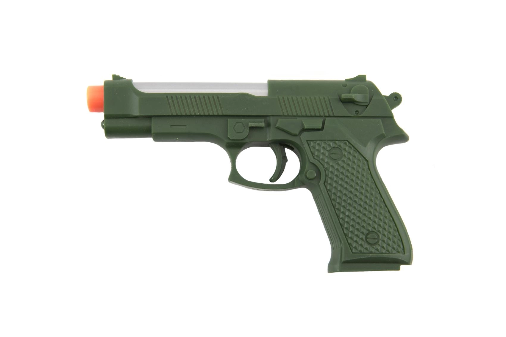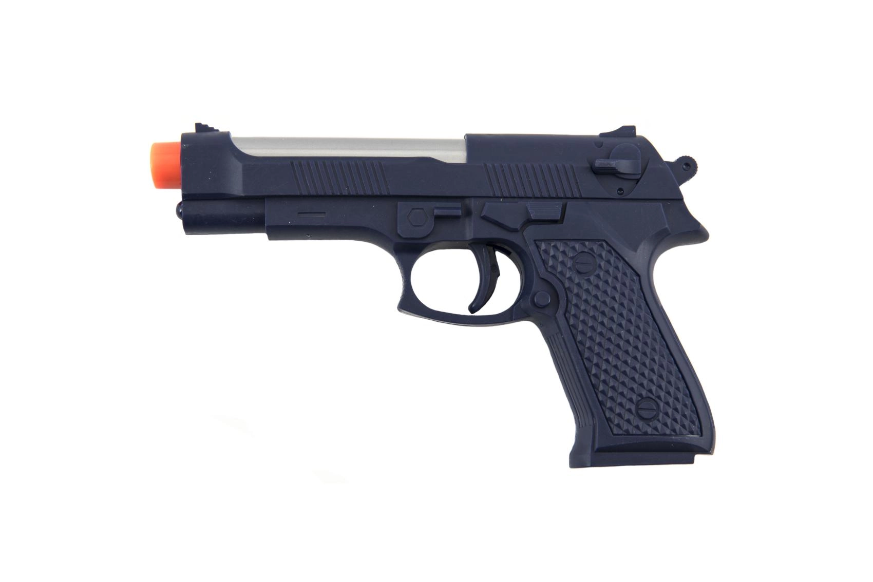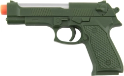 Divertida pistola infantil de plástico de 17 cm que, tras insertar las pilas, se ilumina y emite sonidos. Ideal para pequeños aventureros a partir de 3 años. Las pilas están incluidas, para que los niños puedan empezar a jugar de inmediato.