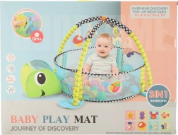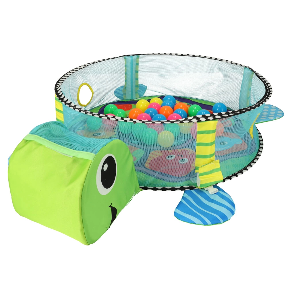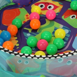 En un solo producto obtendrás un espacio para jugar boca arriba y boca abajo y, al desplegar la malla, también una segura piscina de pelotas con 30 pelotas.