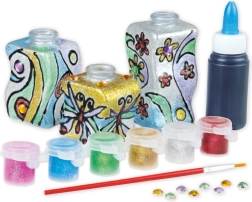 Descubre la diversión de crear con el set creativo para pintar sobre vidrio. El set incluye todo lo necesario para elaborar decoraciones originales: 3 jarrones, 6 pinturas brillantes, un pincel, piedras decorativas y masilla de modelar. Fomenta la creatividad, la motricidad fina y el desarrollo de la imaginación infantil.