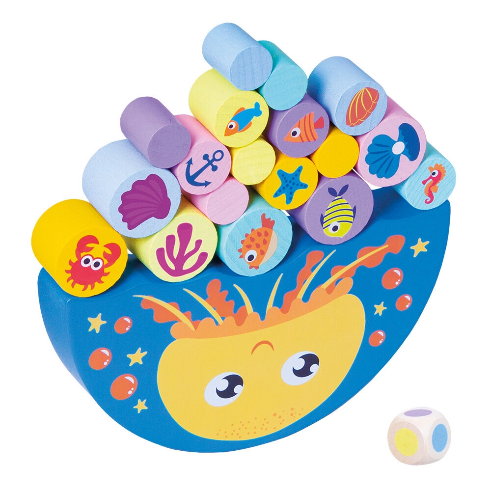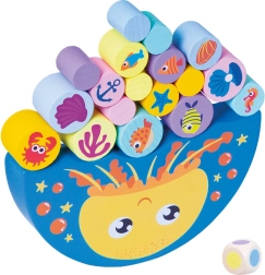 El juego arcade Balance Medusa está diseñado para ser no solo divertido, sino también educativo. Gracias a su base de forma especial, el juguete se inclina según el peso colocado y la tarea de los niños es colocar todos los cilindros sobre la base. Para los más pequeños, el juego es sencillo, mientras que los jugadores más experimentados pueden añadir un elemento de azar con el dado.