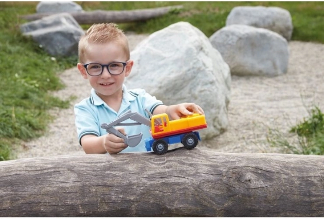 Esta excavadora de plástico es ideal para desarrollar la imaginación infantil y la motricidad fina. Fabricada con materiales de alta calidad, ofrece un juego seguro y divertido para tus hijos.