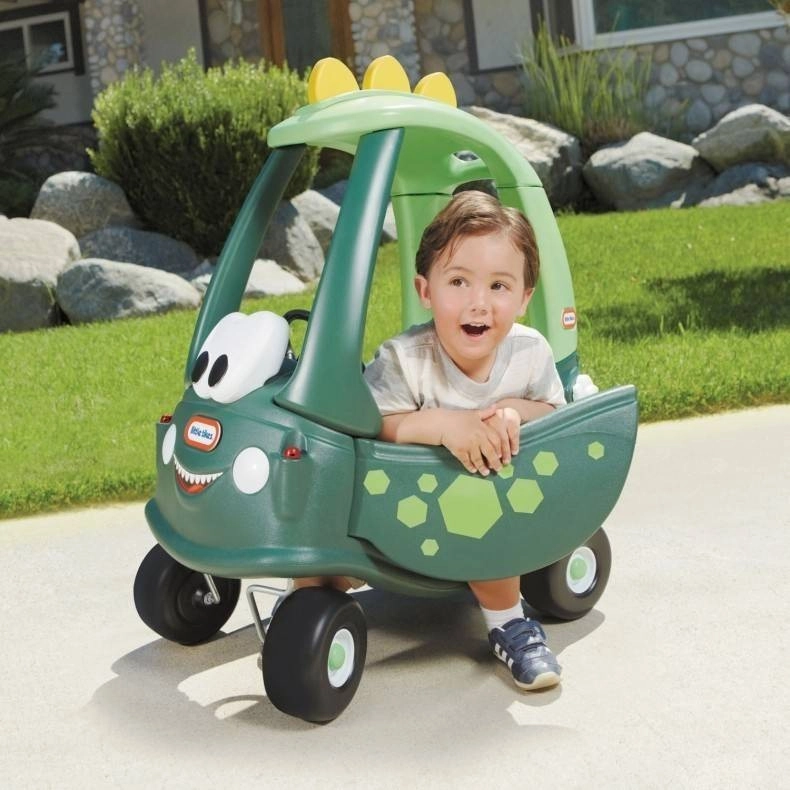 Cozy Coupe Dino es un correpasillos de plástico resistente con diseño icónico y alegre aspecto de dinosaurio que fomenta la imaginación y el movimiento activo. Gracias a sus ruedas robustas, bajo centro de gravedad y puertas bloqueables, la conducción es más segura y estable para los más pequeños. El práctico suelo extraíble protege los pies de los principiantes; más adelante puede retirarse para que el niño se desplace solo.
