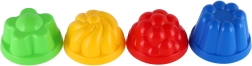 Colorido juego de cuatro moldes redondos para arena con diámetro de 8 cm para pequeños constructores de castillos. A partir de 12 meses, de plástico resistente, en colores vivos y prácticamente envasados en malla para un transporte y almacenaje fáciles.