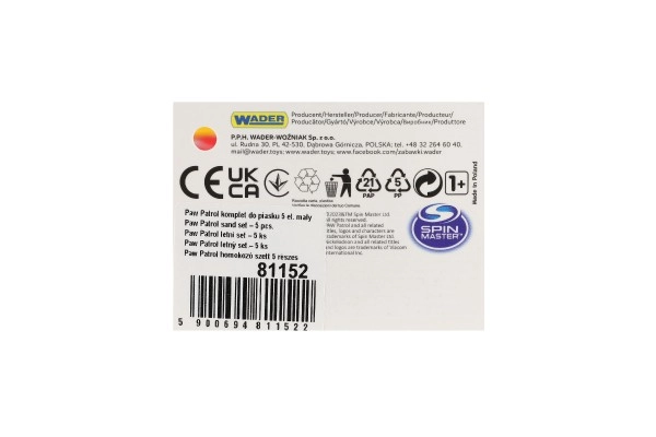 El set infantil para arena con el motivo de PAW Patrol aporta mucha diversión en el arenero, la playa y el jardín. Incluye cubo de aprox. 12 cm, pala, rastrillo y 2 moldes. Plástico ligero y resistente, empaquetado en malla para facilitar el transporte.